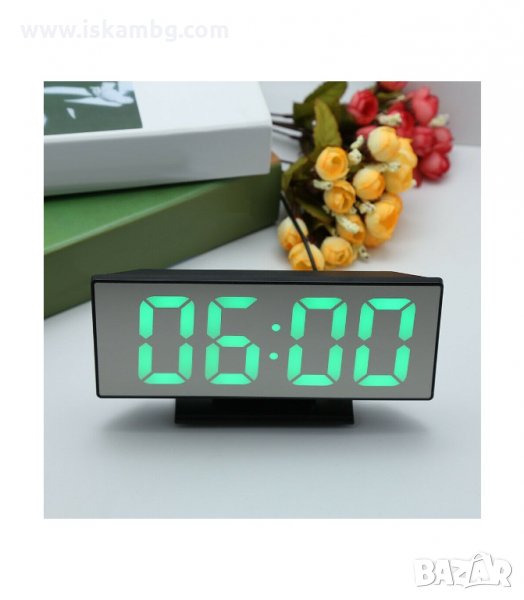 Настолен часовник с огледална повърхност, светещи цифри, аларма, дата, температура