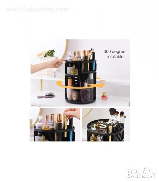 Въртящия се на 360 градуса органайзер е чудесно допълнение към Вашата домашна гримьорна като едновременно прилежно подрежда използваните от Вас продукти и спестява място.