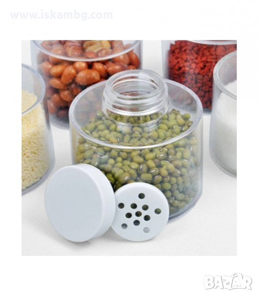 Слагат се едно в друго и се вадят много лесно - просто вдигате горните бурканчета, вземате си това което ви трябва и отново поставяте обратно! Изработени са от прозрачна, устойчива на удар пластмаса, и имат различни приставки с големи и малки дупчици. Идеални са за ситно смлени и по-едри подправки, зелени билки или подправки на зърна.