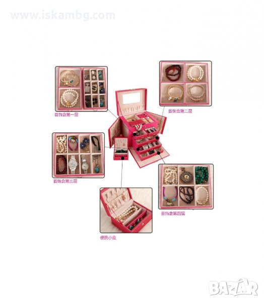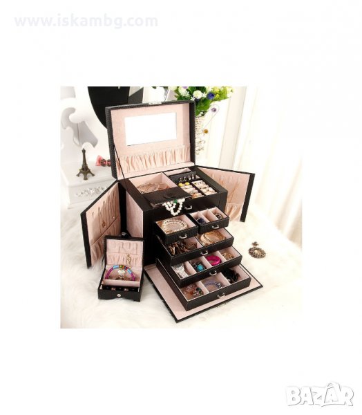 Кутия за бижута с Огледало под капака и Отделения за пръстени, обеци, колиета и гривни