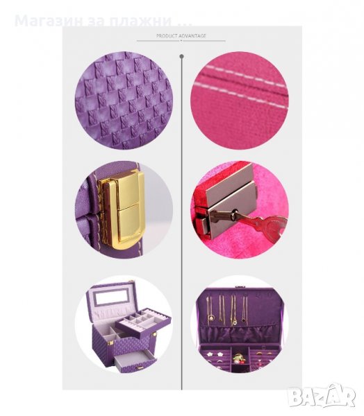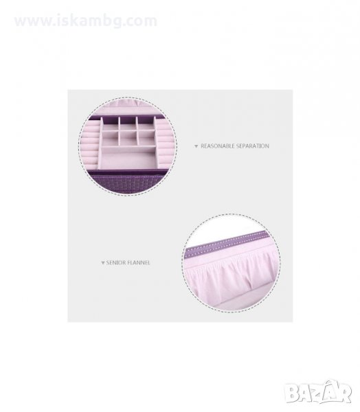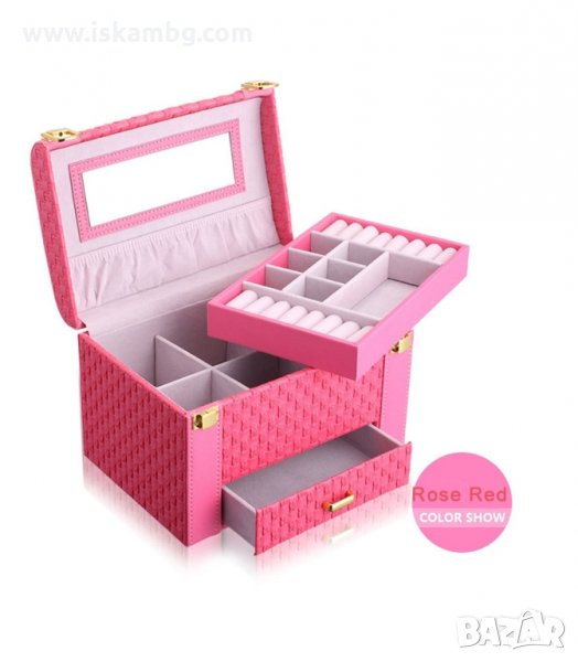 Това е едно ново ниво в организацията на бижутата. Моделът, който ви представяме е истинско произведение на изкуството. Дизайнът включва много място за вашите любими аксесоари часовници, пръстени, гривни и всичко останало. Разполага с голямо огледалце от вътрешната страна на капака, което можете да изтеглите, за да виждате по-добре как ви стоят бижутата, а защо не и да се гримирате по удобен начин.