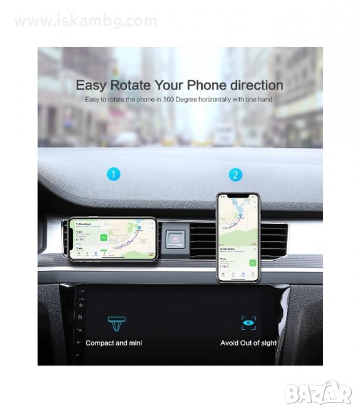 Използвайки топката, вградена в дръжката, можете да регулирате ъгъла на телефона.Силния магнит гарантират стабилността и сигурността на телефона.