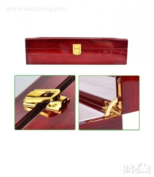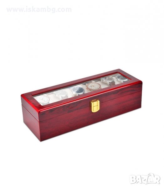Изработена от дърво, снабдена с 6 вътрешни отделения за съхранение на часовници или гривни. Разполага с 6 подложки.