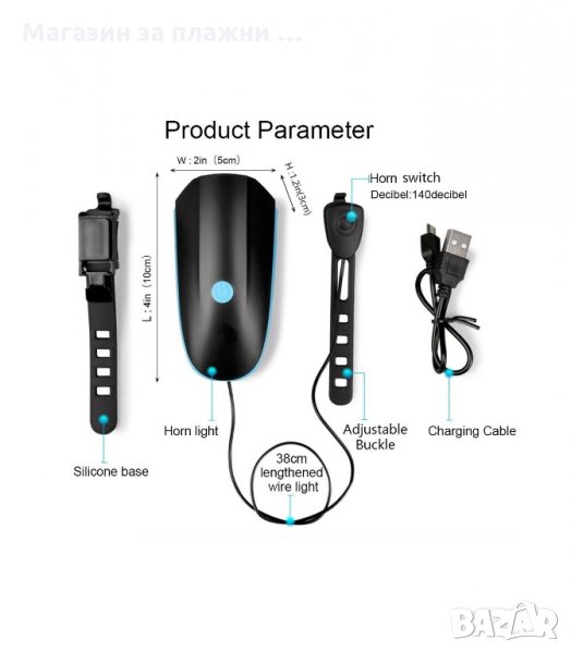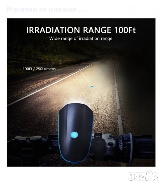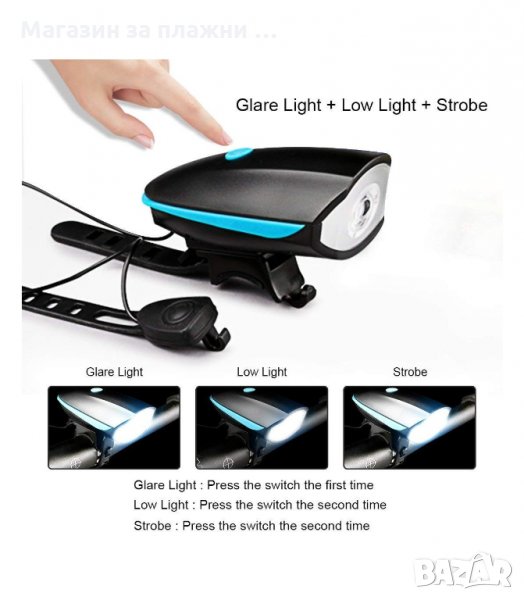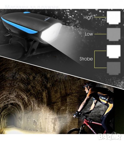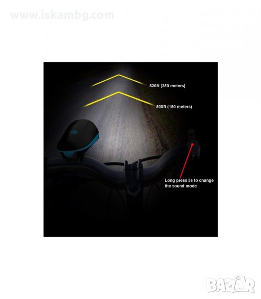 Фенер фар за колело със сирена с мощност 120dB и различни мелодии на сирената