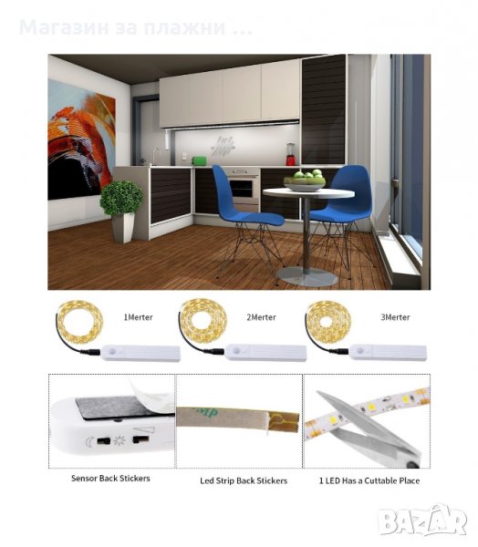 LED лента с 2 режима на работа и датчик за движение - с дължина 1, 2 или 3 метра