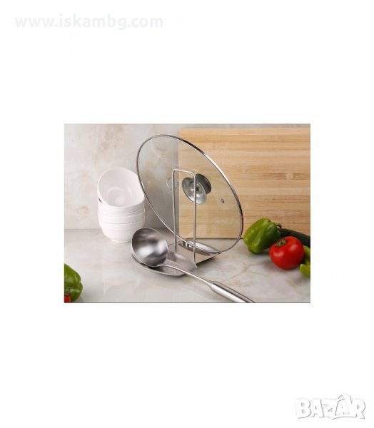 Метална самостояща поставка за капаци и прибори за готвене