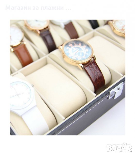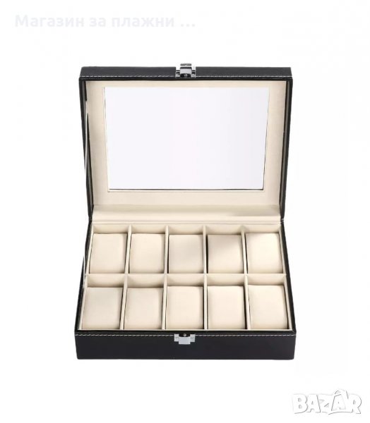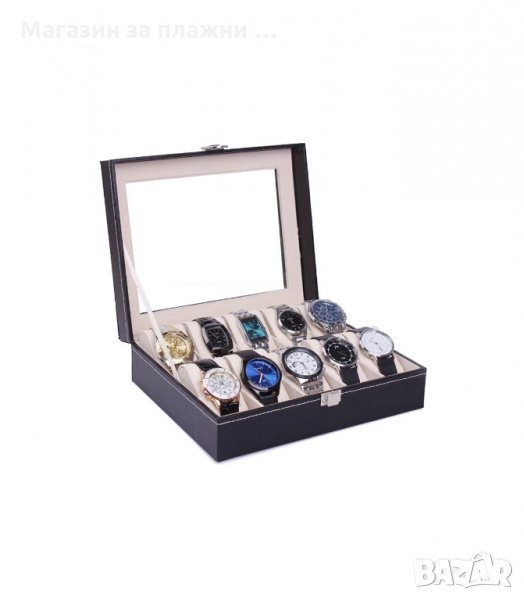 Осигурете комфорт за вашите часовници с кутия за 10 броя часовници. Произведена от еко кожа, снабдена с възглавнички, за всеки часовник или гривна. Подходяща за пренасяне и за съхранение.