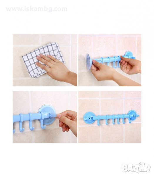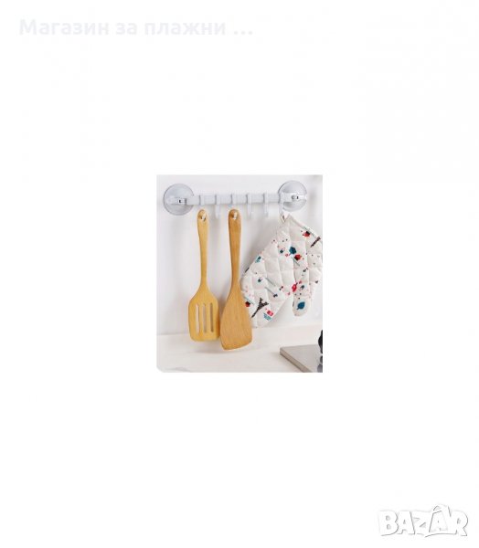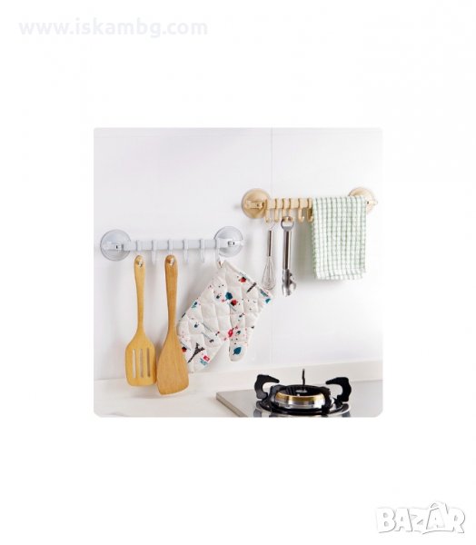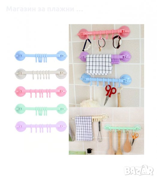 Закачалка за кухненски аксесоари или органайзер за баня с вакуумно закрепване с 6 куки