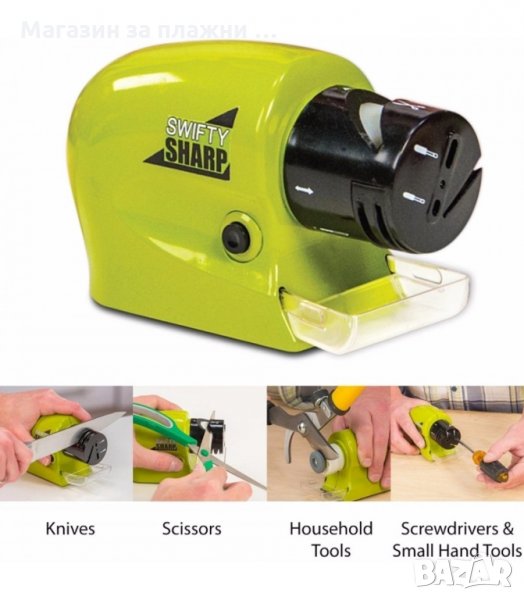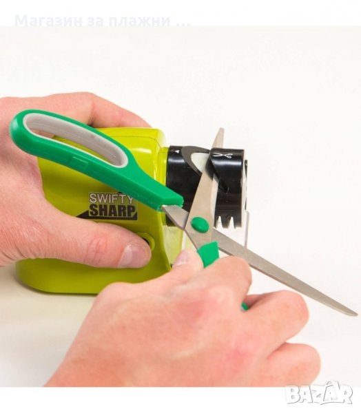 Електрическо точило за ножове Swifti sharp е полупрофесионално точило за ножове, подходящо за точене на всяко едно острие. Двустепенната система за заточване за няколко секунди превръща остриетата на обикновените ножове в остри като бръснач прибори за рязане във Вашата кухня. Може да го използвате за ножове, прецизни ръчни инструменти, ножици и по-големи домакински инструменти за разрязване.