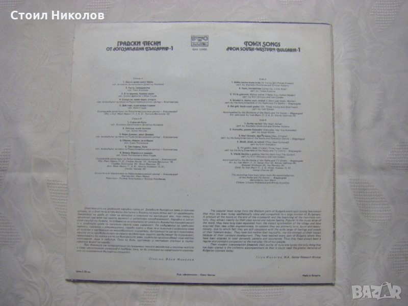 Грамофонна плоча - ВНА 12400 - Градски песни от Югозападна България - 1