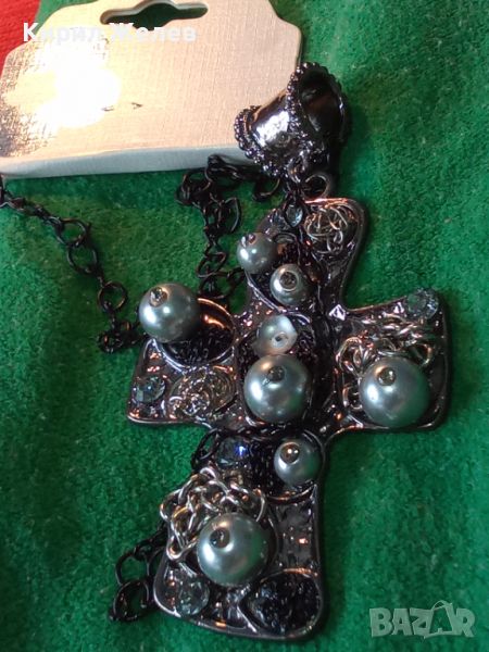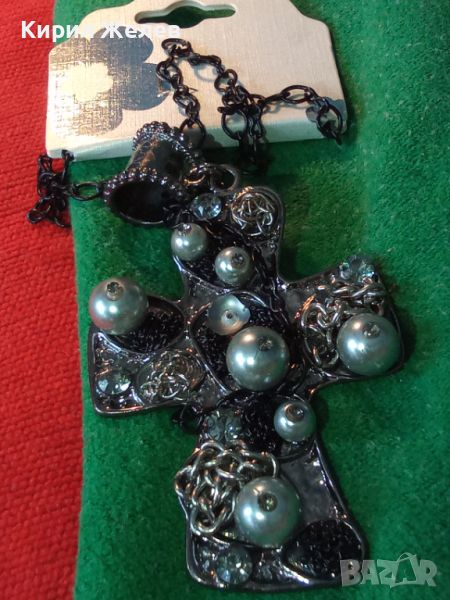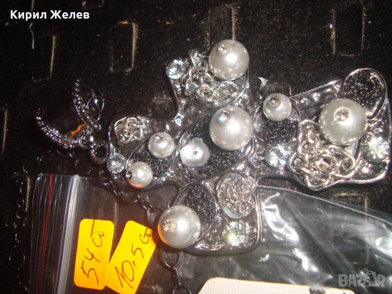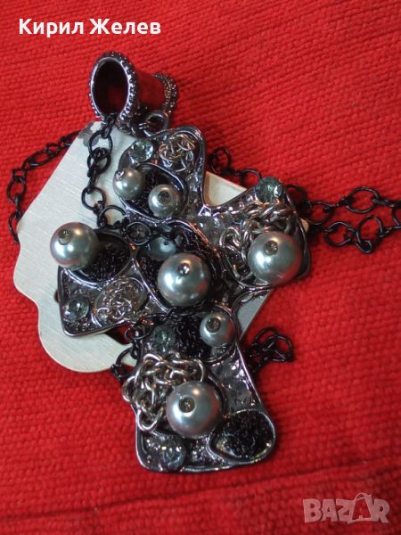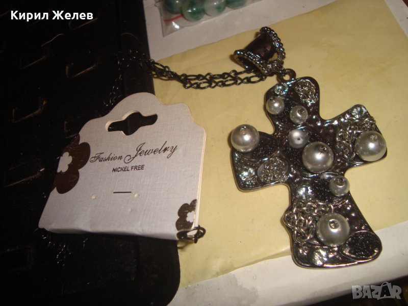 МОДЕН АРТ СРЕБРИСТ ПЕРЛЕН КРЪСТ МЕДАЛЬОН с ВЕРИЖКА 24303