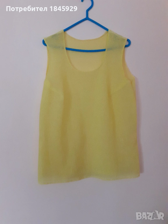 2. Блуза от пясъчна коприна с цвят банан с къс ръкав- Рамо-50 см.; Бюст и ханш- 110 см.;Ръкав -28 см.;Дължина- 70 см. Цена- 5 евро. Двете блузи са ползвани няколко пъти.