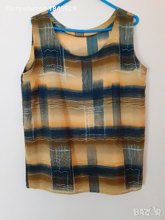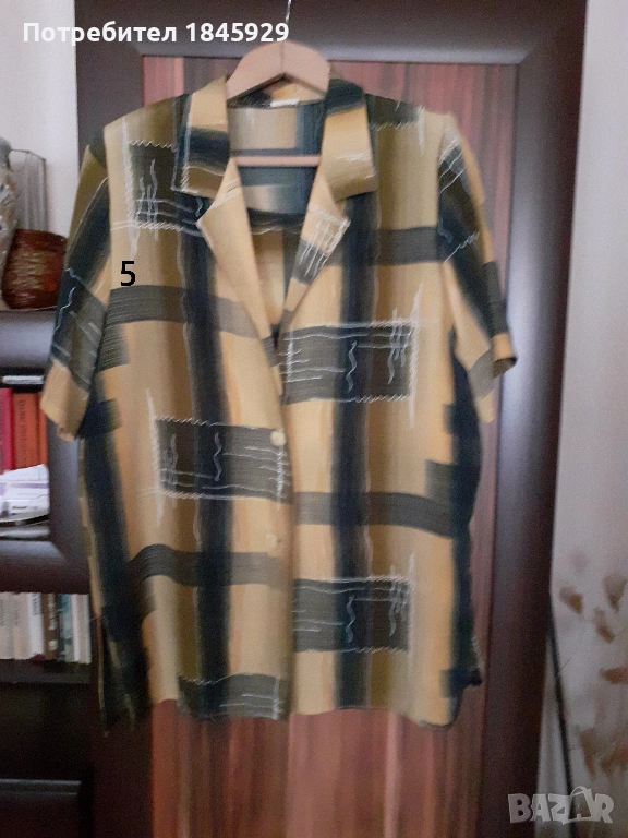 5. Цветна блуза от коприна, с къс ръкав и две части. Ханш-110 см.Цена- 6 евро.