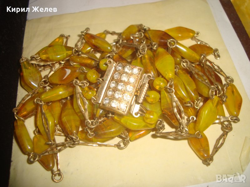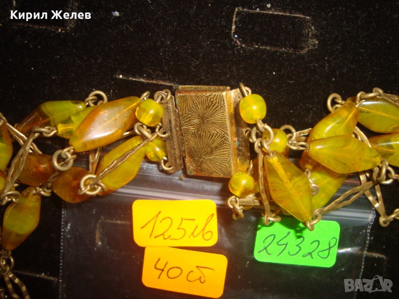 СТАРИННА АРТ ДЕКО ОГЪРЛИЦА от МУРАНО и БРОНЗ ЦВЕТНО ВЕНЕЦИАНСКО СТЪКЛО РЕТРО АРТ БИЖУ РЯДКО 24328