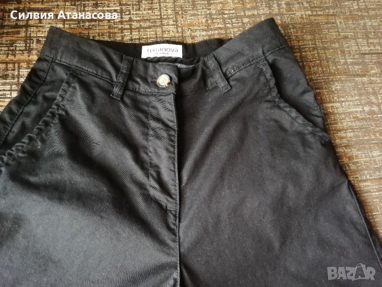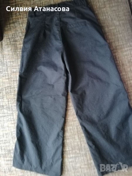 Панталон от плътна черна материя, широки 7/8 крачоли, размер EU36/S, нов, без забележки.