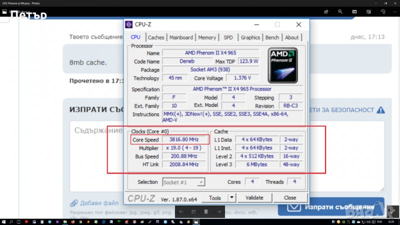 Процесор,AMD, Phenom II X4 965 3.4GHz - 3.92GHz Quad Core, четириядрен → Обява 33958043