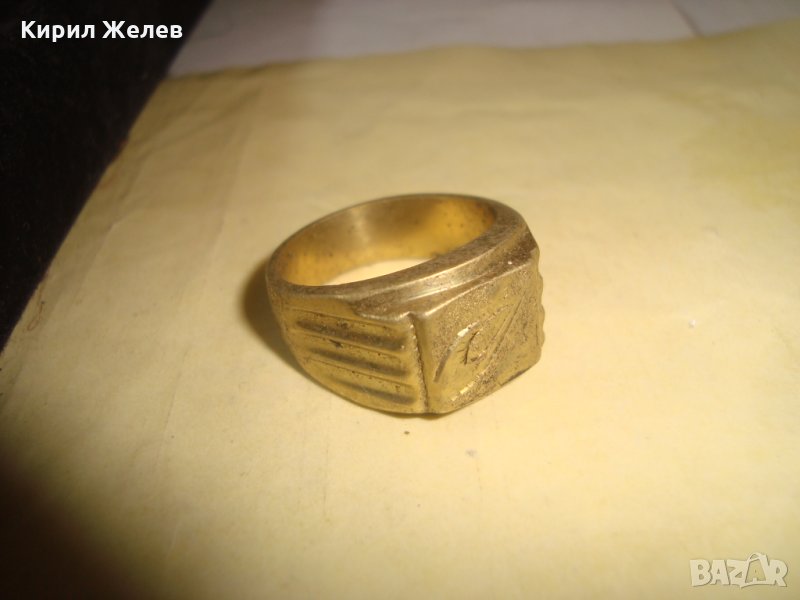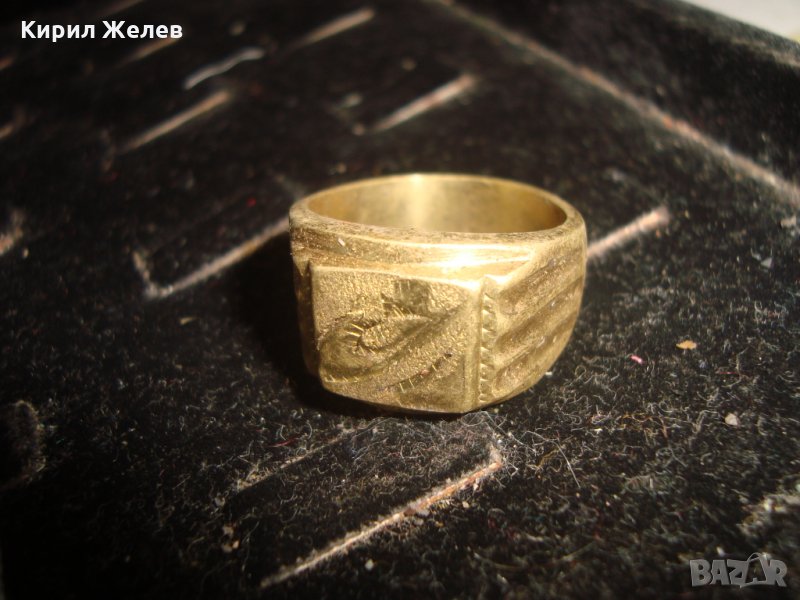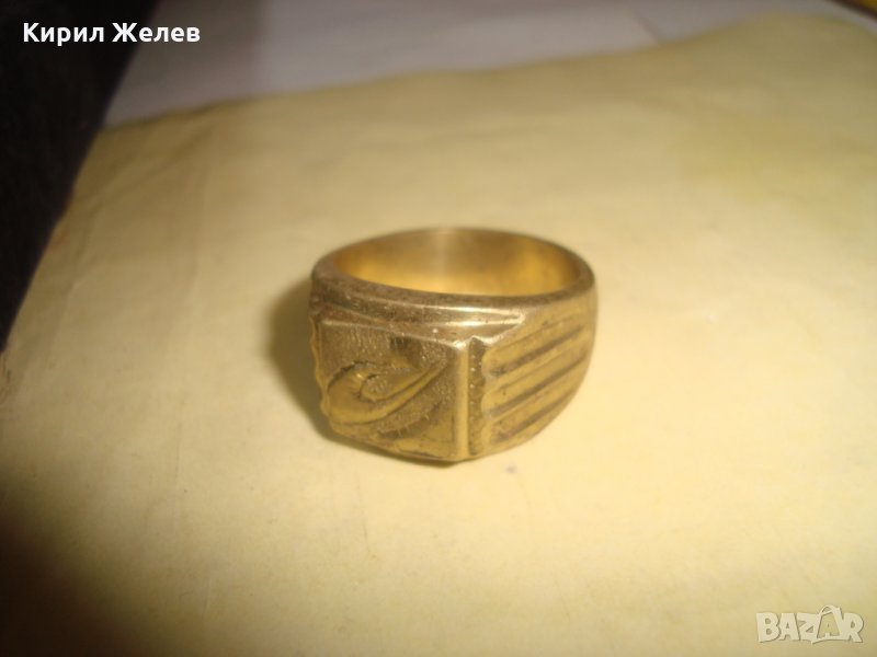 СТАР ПОЗЛАТЕН БРОНЗОВ ПРЪСТЕН ОРНАМЕНТИРАН РЪЧНО МАЙСТОРСКА АРТ ДЕКО ИЗРАБОТКА МАСИВЕН 21866