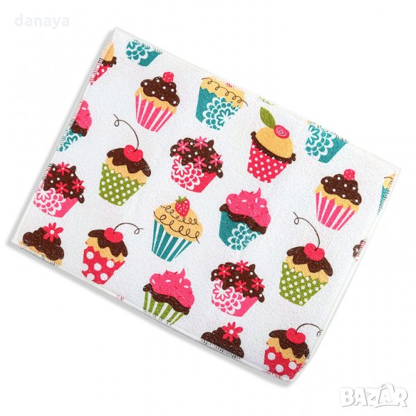 Абсорбираща подложка за сушене на съдове с принт на шарени кексчета. Мекичка и приятна на допир, с ярък и цветен дизайн, който ще внесе настроение в кухнята. Изключително подходяща за изцеждане на измитите чаши, чинии и прибори. Микрофибърът в подложката бързо и ефективно попива излишната влага. Възпрепятства разпространението на болествотворни микроорганизми. Дори и след изпиране, микрофибърът не губи абсорбиращите си свойства.
