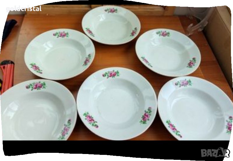 Стар български порцелан супник -45лв сосиера -19лв чинии дълбоки 6бр -45лв елипси 6бр-55лв за десерт и предястие -40лв неизползван с етикет ретро арт декор винтидж колекция стари антикварни предмети обзавеждане за дома и семейството подходящи за подарък за ценители и колекционери на
