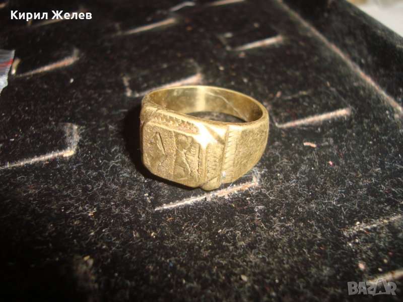 СТАР ПОЗЛАТЕН БРОНЗОВ ПРЪСТЕН ОРНАМЕНТИРАН РЪЧНО МАЙСТОРСКА АРТ ДЕКО ИЗРАБОТКА МАСИВЕН 21814