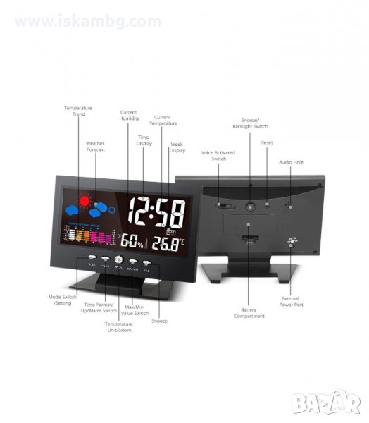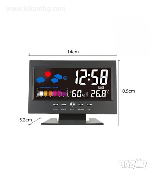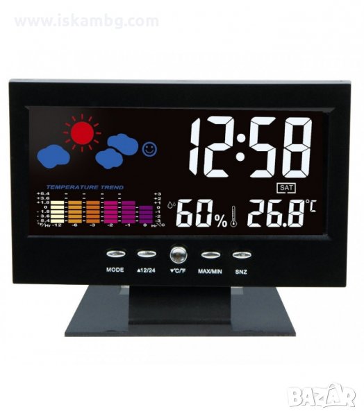 Настолен LCD дигитален часовник, метеостанция с аларма