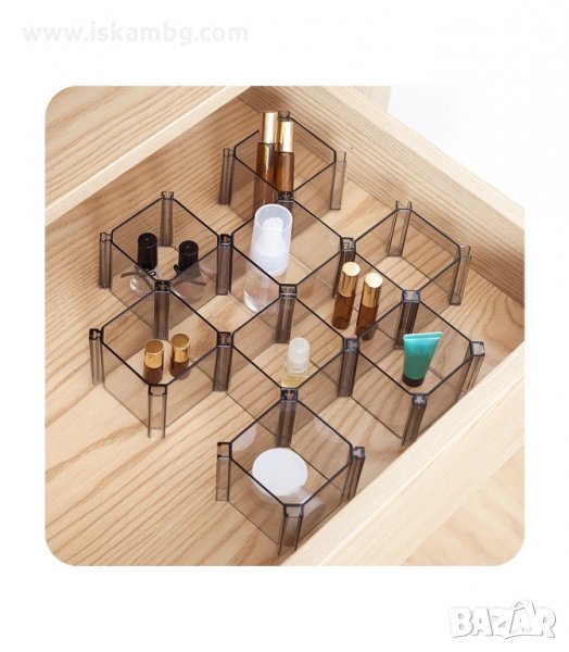 Органайзер за шкаф или чекмедже състоящ се от 6 квадратни отделения, съединяващи се едно за друго, по ваше желание. Органайзер за чорапи, бельо и др. дребни аксесоари, който ще внесе ред по гардеробите и шкафовете. Практичен и удобен