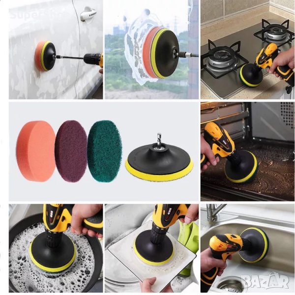 С комплект за полиране, пастиране и почистване за винтоверт ще можете да почиствате всякакви повърхности – фугите, килима, гумите, захабени съдове и др. Можете лесно да достигнете и до най-труднодостъпните места!