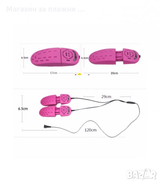 Този универсален уред за сушене на обувки ефективно отстранява влагата и защитава обувките ви, като не допуска образуването на мухал и плесен. Размерът и формата на изсушителя са универсални и могат да се използват при различни размери и видове обувки. Сешоарът за обувки аботи с минимална електрическа консумация на 220V захранване.