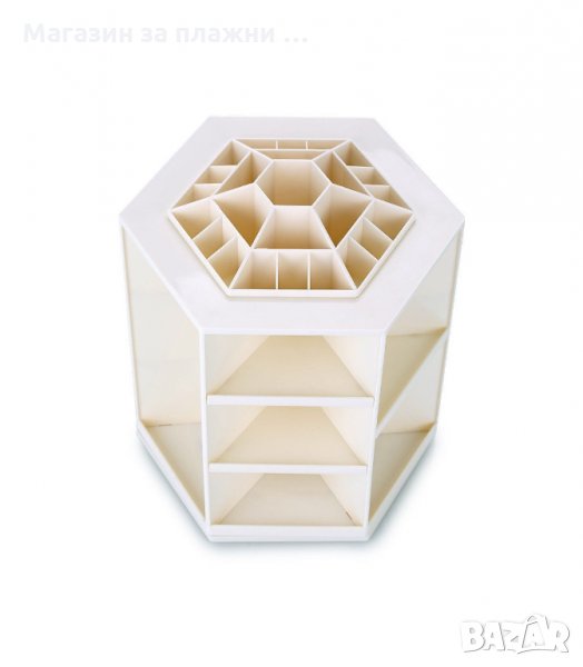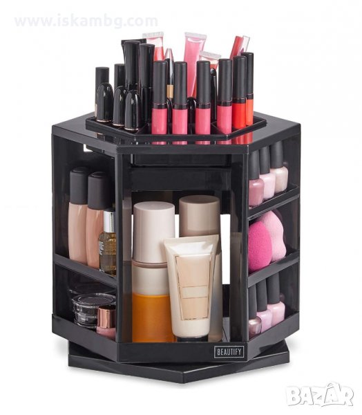 Въртящия се на 360 градуса органайзер е чудесно допълнение към Вашата домашна гримьорна като едновременно прилежно подрежда използваните от Вас продукти и спестява място.
