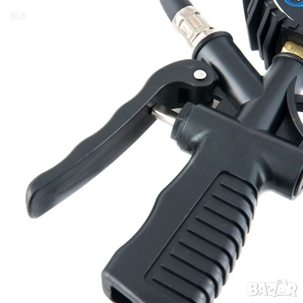 Професионален пистолет за въздух с вграден дигитален манометър за прецизен контрол на налягането. Подходящ за помпене на гуми, проверка и регулиране на налягане в автомобилни, велосипедни и други пневматични системи. Ергономичен дизайн, здрав корпус и лесен за работа дисплей с висока точност. Захранване с батерия, автоматично изключване за пестене на енергия.