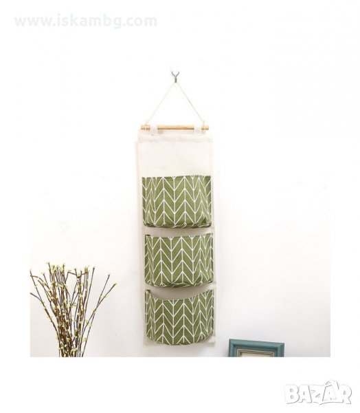 Изключително практичен и подходящ за стена. Може да се комбинира чудесно с постелки, покривки за диван, декоративни възглавници, възглавници за столове и други. Текстилен стенен органайзер, разполага с 3 отделения с еднаква големина. Лесно се поставя. Материята на изработка е текстил и дървена летвичка.