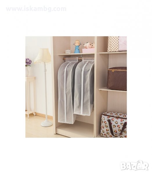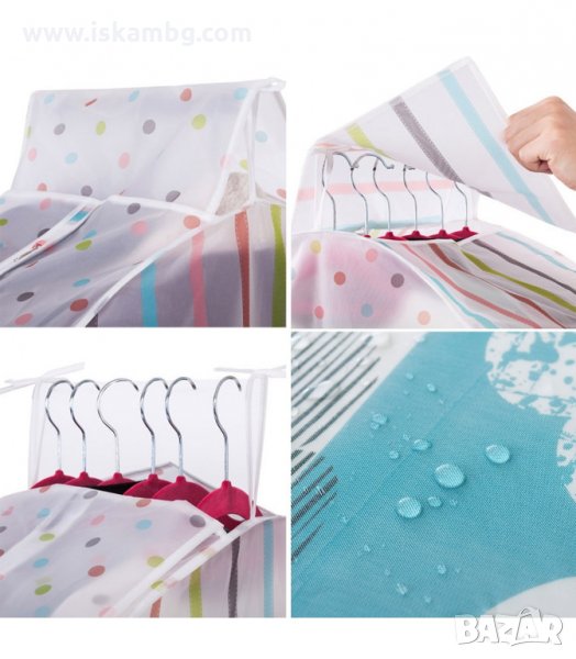 Голям калъф за съхранение на дрехи в гардероб. Всеки калъф протектор е достатъчно широк, за да съхраните няколко палта, рокли, сака, ризи в един калъф. Предпазва дрехите от прах, навлажняване, бактерии и замърсявания. Удобен цип за лесен достъп до дрехите. Калъф органайзер за гардероб с голям капацитет. Изработен от полупрозрачен нетъкан материал, издръжлив и устойчив, може да се мие. Един практичен органайзер за дрехи, с който гардеробът ще е винаги подреден и чист.
