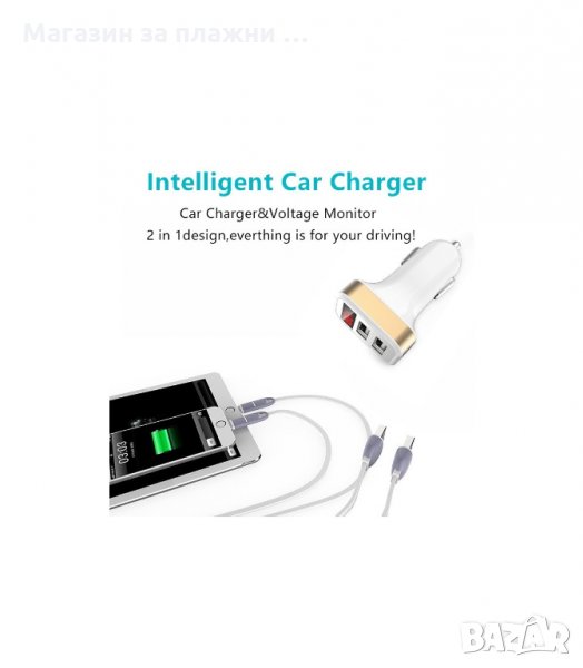 Зарядно за кола : разклонител за гнездото на запалката, волтметър и USB зарядно