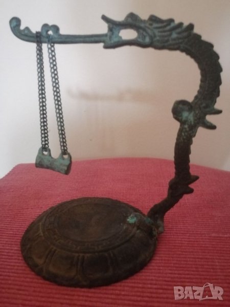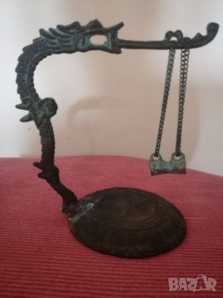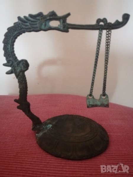 Стара месингова стойка за канбана, дракон, Китай. Канбаната липсва. Стойката има патина.