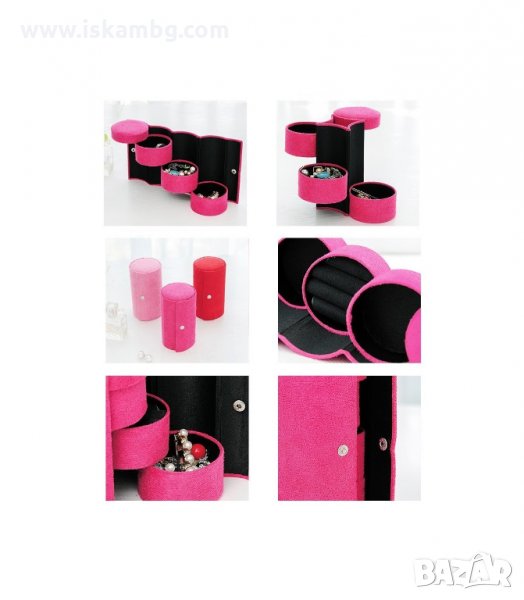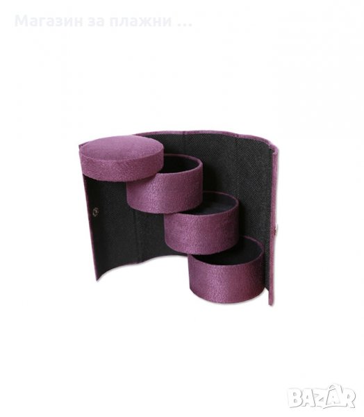 Кутията е с автоматично отваряне. Първото ниво е подходящо за подреждане на обеци, брошки и пръстени