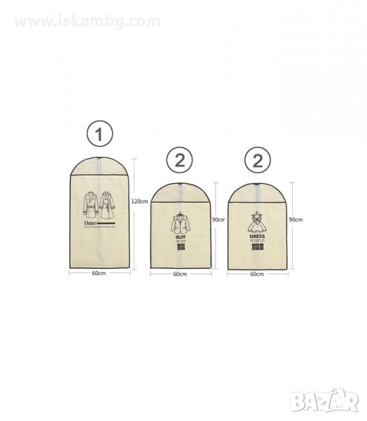 Калъфи от нетъкан текстил за съхранение и транспортиране на дрехи в три размера