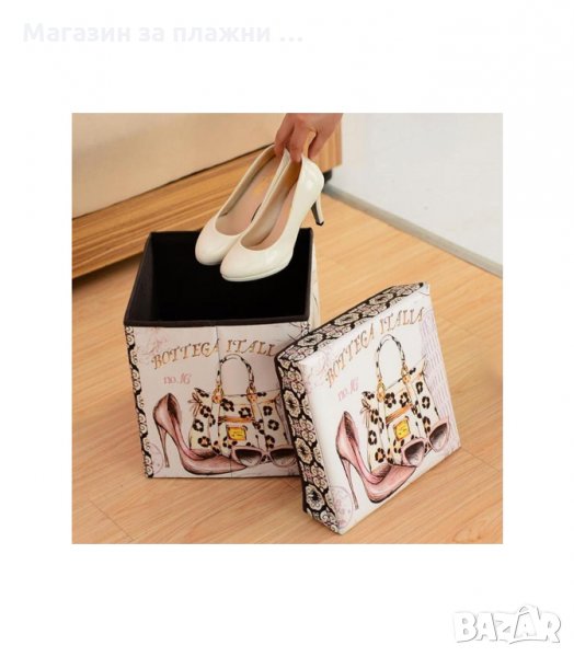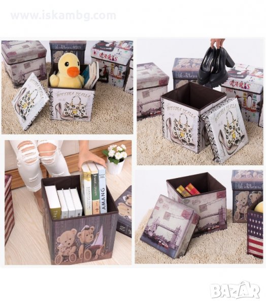 Сгъваема табуретка от технокожа с винтидж принт - контейнер за съхранение