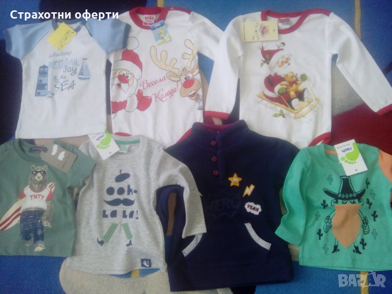 Разполагам с избор от тениски,панталонки, блузки, комплекти, всякакъв тип дрехи за бебе при интерес пишете, коментари по цената и отстъпка при закупуване на 3 и повече неща