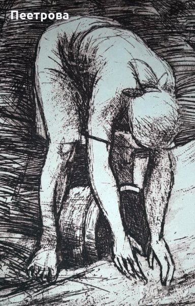 рисунка върху картон. Реалистична и въздействаща рисунка, пресъздаваща тежкото