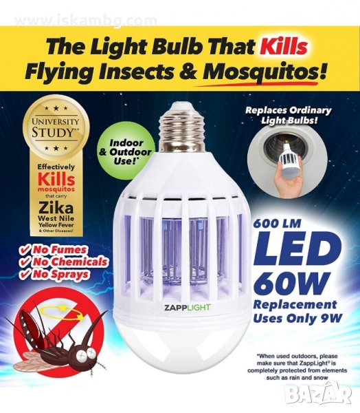 Представяме Ви крушка против комари ZAPP LIGHT първо примамва и след това унищожава досадните комари и други летящи вредители!