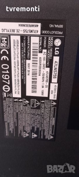 LG 47LN575S.BEEYLJG DISPLAY LC470DUE SF R1 Борда е гарантирано работещ Демонтиран от телевизор LG 47LN575S със счупен дисплей LC470DUE SF R1 тествана от нашия техник
