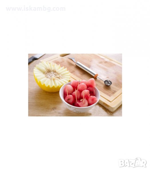 Предлагаме ви инструмент за карвинг и плодови топчета, изработен от неръждаема стомана с пластмасова дръжка. С тази лъжица ще създадете най-атрактивните плодови десерти и декорации. Тя има две страни, като с едната страна лесно издълбавате малки топчета от пъпеш, диня или други меки плодове, а с острата част изрязвате различни декорации.