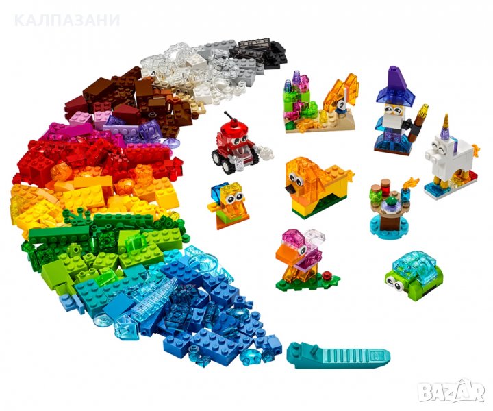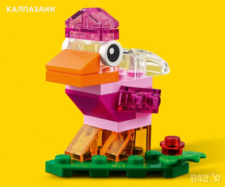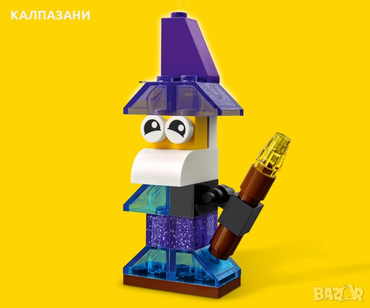 Добавете блясък към детските творения LEGO® с този комплект за игра „LEGO Classic Творчески прозрачни тухлички“, представляващ набор от цветни полупрозрачни тухлички LEGO. Децата имат избор от 8 оригинални идеи за сглобяване – от магьосник с бутилки с отвари до лъскав робот, който сервира чай. А с допълнителните тухлички в кутията могат да създадат всичко, което могат да си представят, като така развиват важни житейски умения чрез сглобяване и игра.
