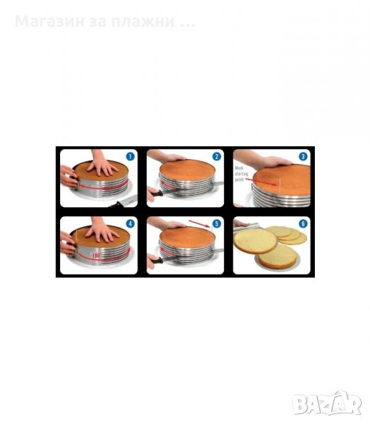 Матрица за рязане на блат за торта е лесна за използване, представлява пръстен със шест отвора, през които ножа минава и реже блата на тънки платки.