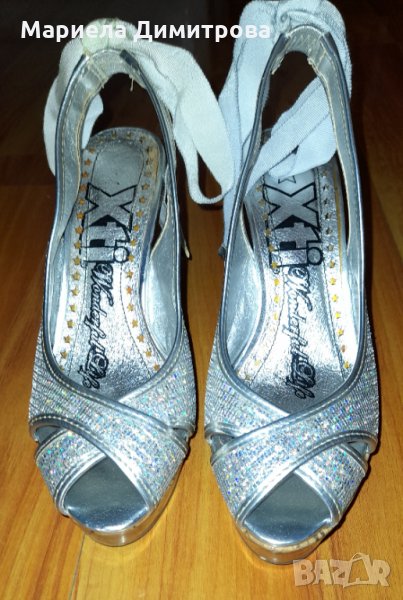 Сребристите пантофки са 38 номер, а тези на платформа 37.