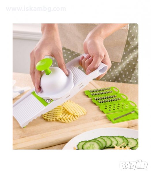 Ренде/резачка за рязане и стъргане на плодове,зеленчуци,месо,сирене,кашкавал и други храни с пет приставки.