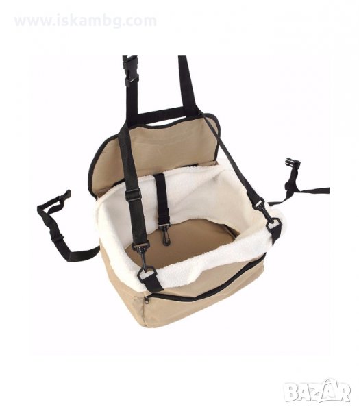 Този модел е с квадратна форма и е произведен от устойчив материал с мека подплата по стените. Осигурява уединение и чуство за сигурност и комфорт на животинчето. Разполага със специални колани за закрепване към автомобилната седалка и халка за закопчаване на каишката на кучето. Така то няма да напусне чантата по време на път.