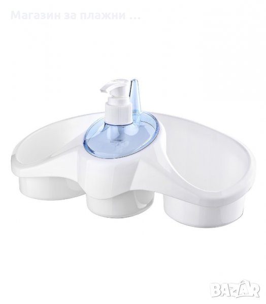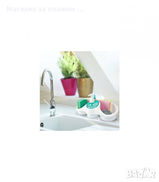 Чудесен органайзер за мивка с диспенсър за веро или течен сапун и две удобни отделения за останалите аксесоари!