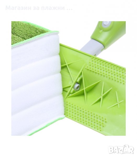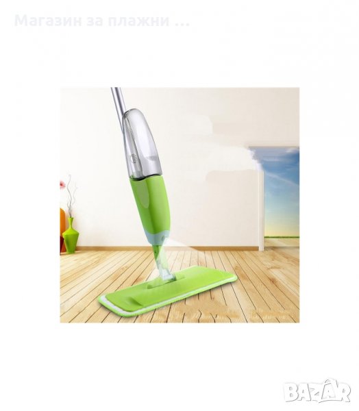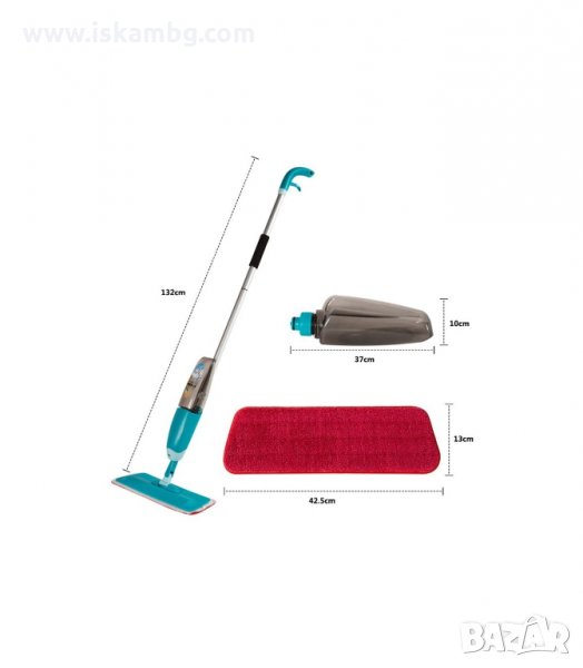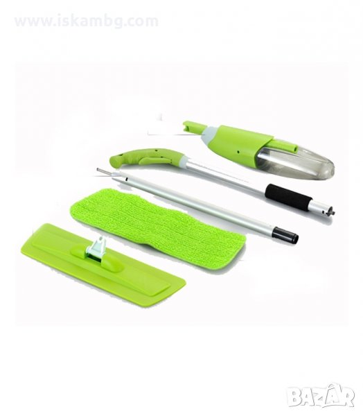 Спрей-мопът за чистене с вода има свеж дизайн. Той е в бял и зелен цвят. Има лека конструкция. Дръжката му е телескопична.