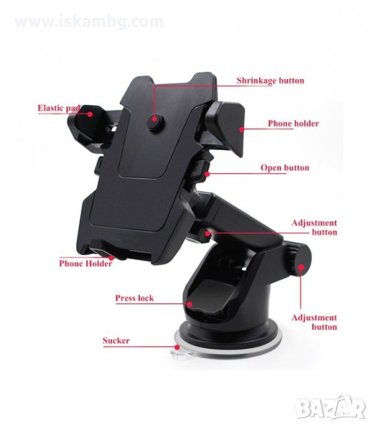 Телескопична поставка за телефон за предното стъкло или таблото